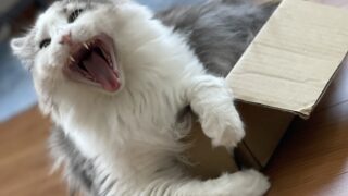 日記【チームサイベリアン】「にぼし」の好きな狭い箱のお話 「にぼし」が好きな狭いところに入ってる写真について紹介しています。 ちょっと狭いけど満足そうにダンボールに入っている「にぼし」君の 余ったお腹のお肉を見てあげてください! 2022.04.12日記日記ぺーじ